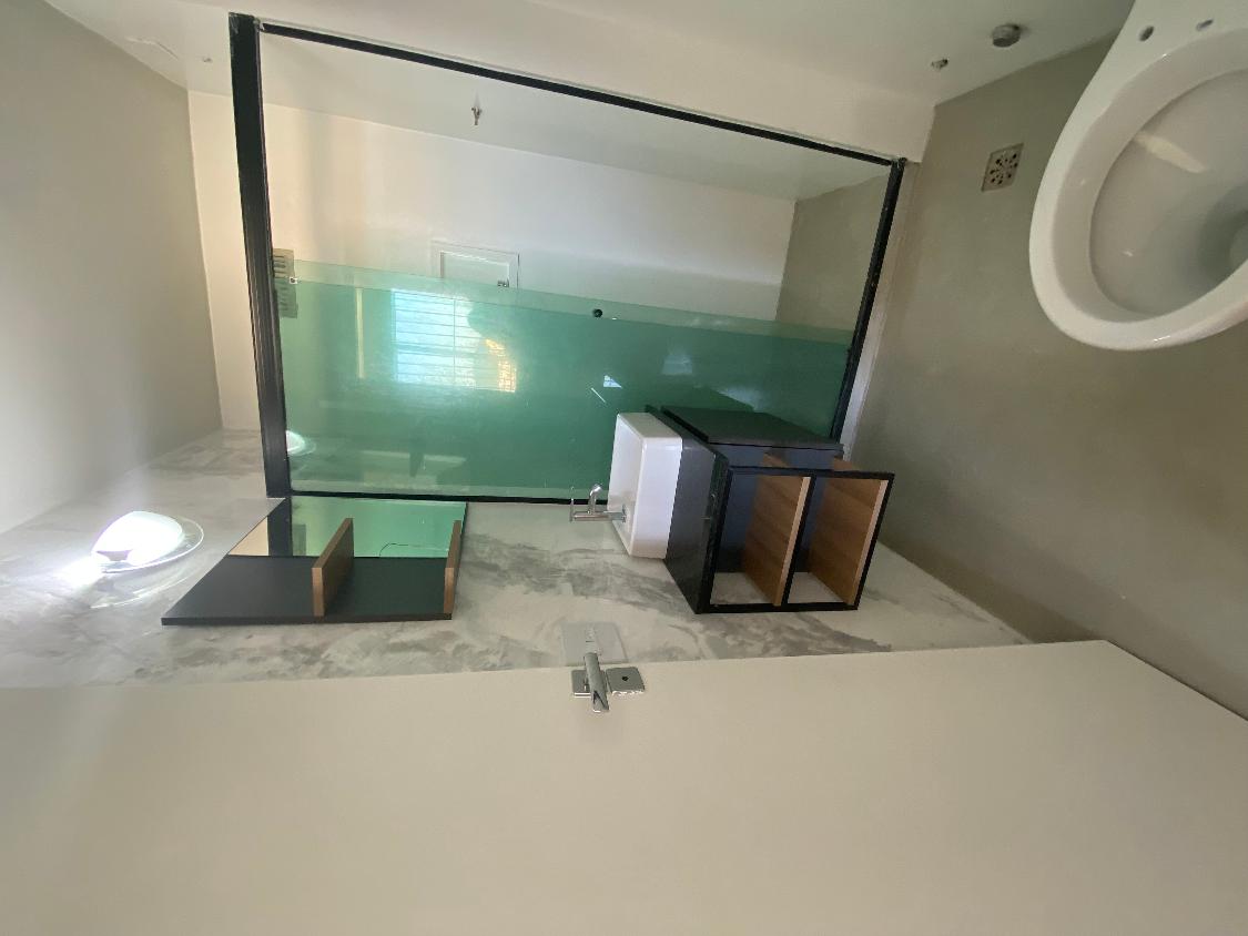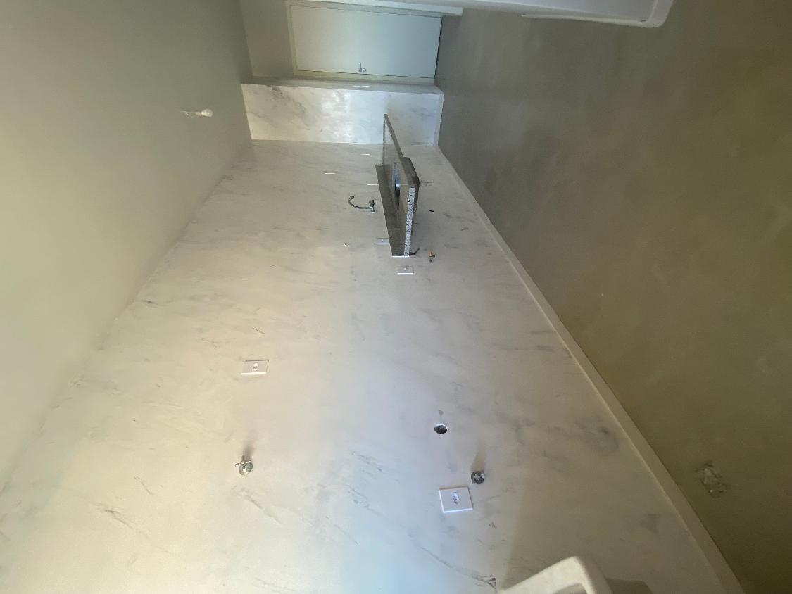 Apartamento com acabamentos modernos, piso de cimento queimado e planta bem distribuída.
