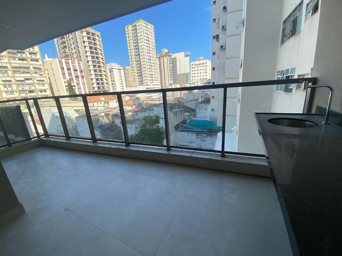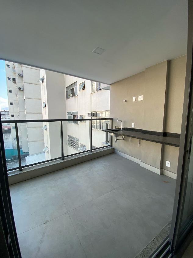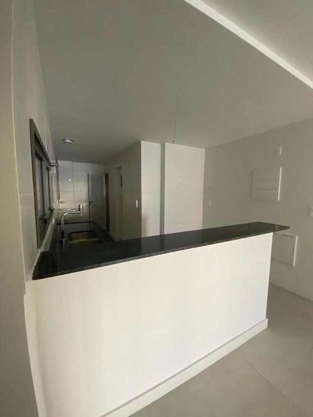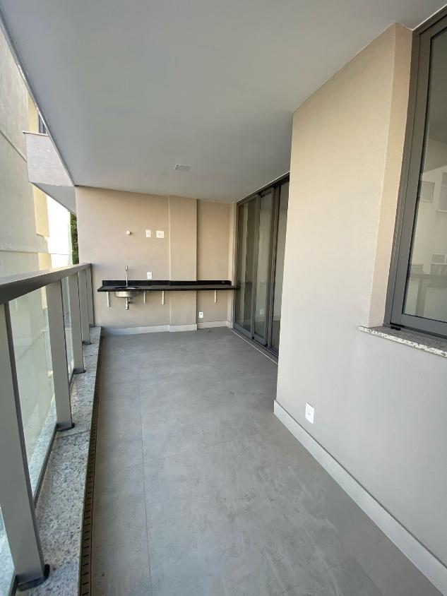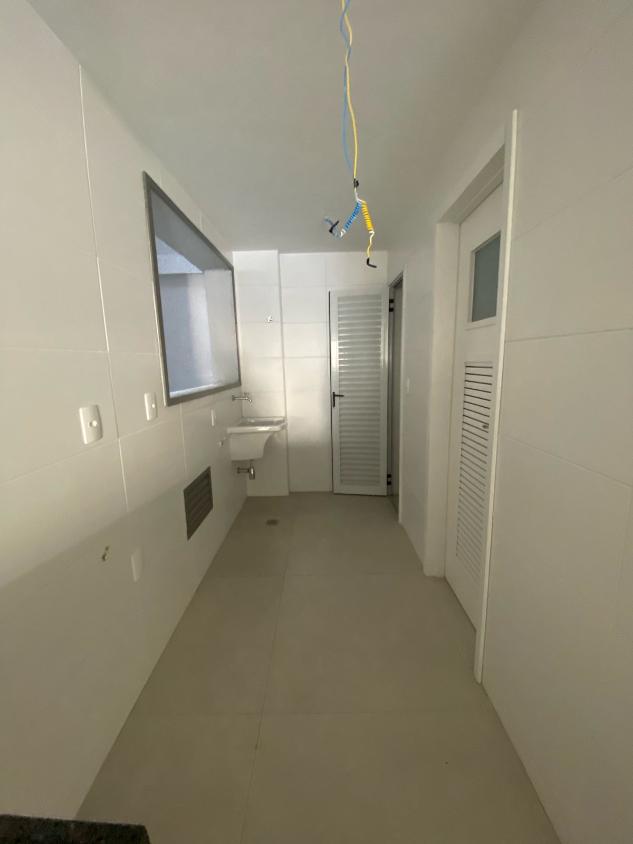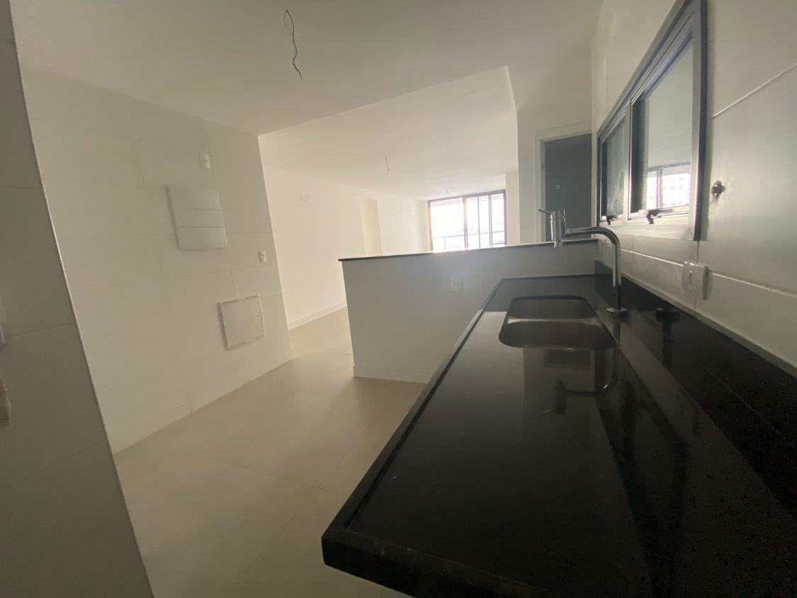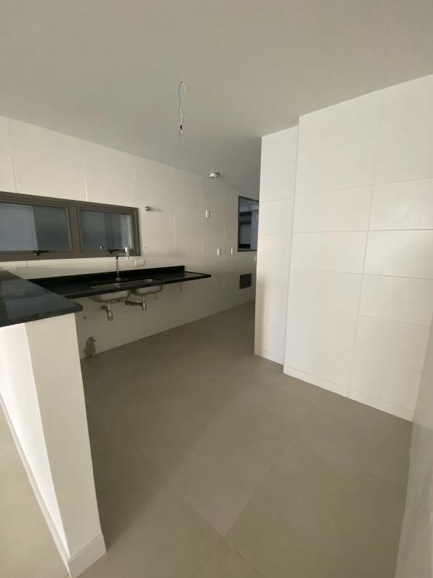 A área de estar e lazer é integrada, com sala ampla e varanda gourmet. A cozinha é integrada à sala e tem uma área de serviço prática. O apartamento tem uma planta bem distribuída para aproveitar ao máximo o espaço.