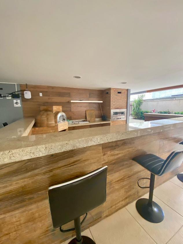 A área de estar e lazer é integrada, com sala ampla e varandão com vista verde. A cozinha é ampla e tem uma área de serviço prática. O apartamento tem uma planta bem distribuída para aproveitar ao máximo o espaço.confortável com localização privilegiada.