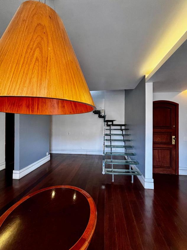 Distribuída em dois pavimentos, a cobertura oferece ambientes generosos e funcionais. No primeiro piso, destaca-se a ampla área social com duas salas integradas, perfeitas para receber com elegância, e uma charmosa varanda com vista lateral para o mar, que valoriza ainda mais a luminosidade natural e a ventilação cruzada. São 4 quartos, incluindo uma suíte master com closet, todos climatizados e com armários planejados. A cozinha é espaçosa, funcional e também equipada com marcenaria sob medida. A área de serviço é completa, com dependência de empregada e entrada independente.