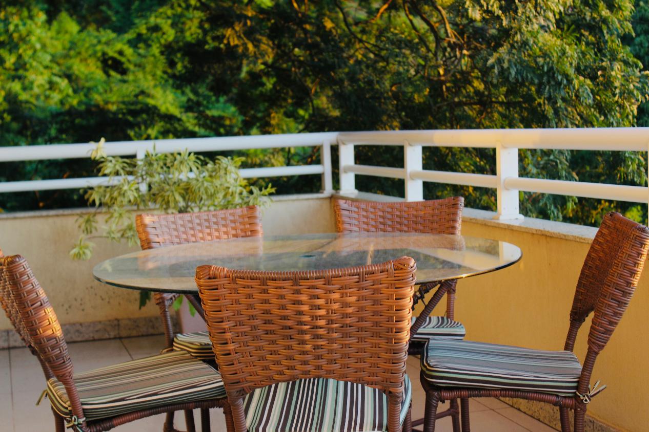 ? Espaço íntimo integrado à varanda, criando uma atmosfera acolhedora