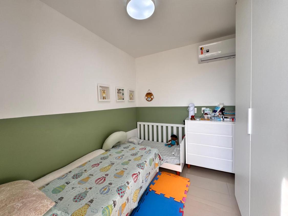 DESCRIÇÃO: O espaço é composto por uma sala (armários TODESCHINI), 2 quartos, sendo 1 suíte, uma cozinha bem equipada com armários TODESCHINI (no banheiro tb), e uma área ao ar livre com churrasqueira e piscina. Área coberta que pode ser adaptada para ser o terceiro quarto. Banheiros contam com ventilação natural. O prédio é moderno e apresenta uma variedade de opções de lazer para os moradores.