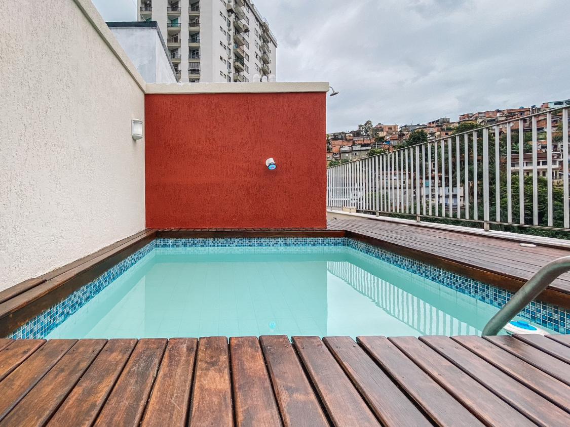 Cobertura dúplex, 3 quartos, 1 suíte com closet, 2 banheiros, cozinha, 2 salas, varanda, área gourmet com piscina e churrasqueira.