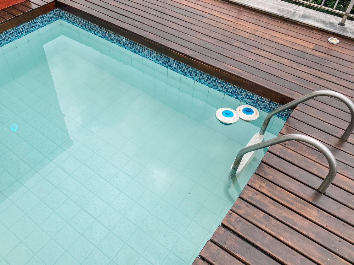 Sala, suíte com closet, espaço gourmet com churrasqueira, forno de pizza, pia com armário, piscina de azulejos com deck e chuveirão.