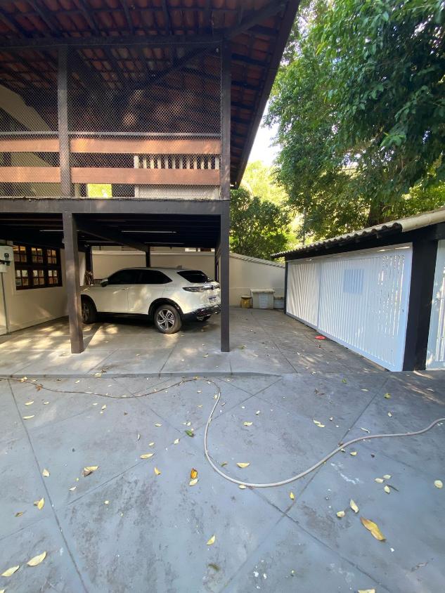 Na parte externa a casa possui garagem coberta e descoberta, canil e área de lazer completa: piscina, churrasqueira, sauna e banheiro com um lindo jardim.