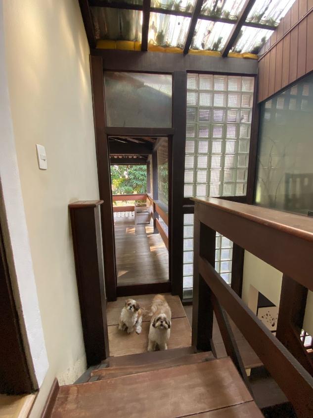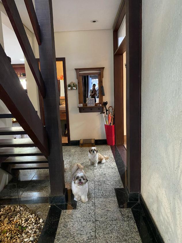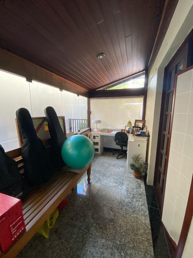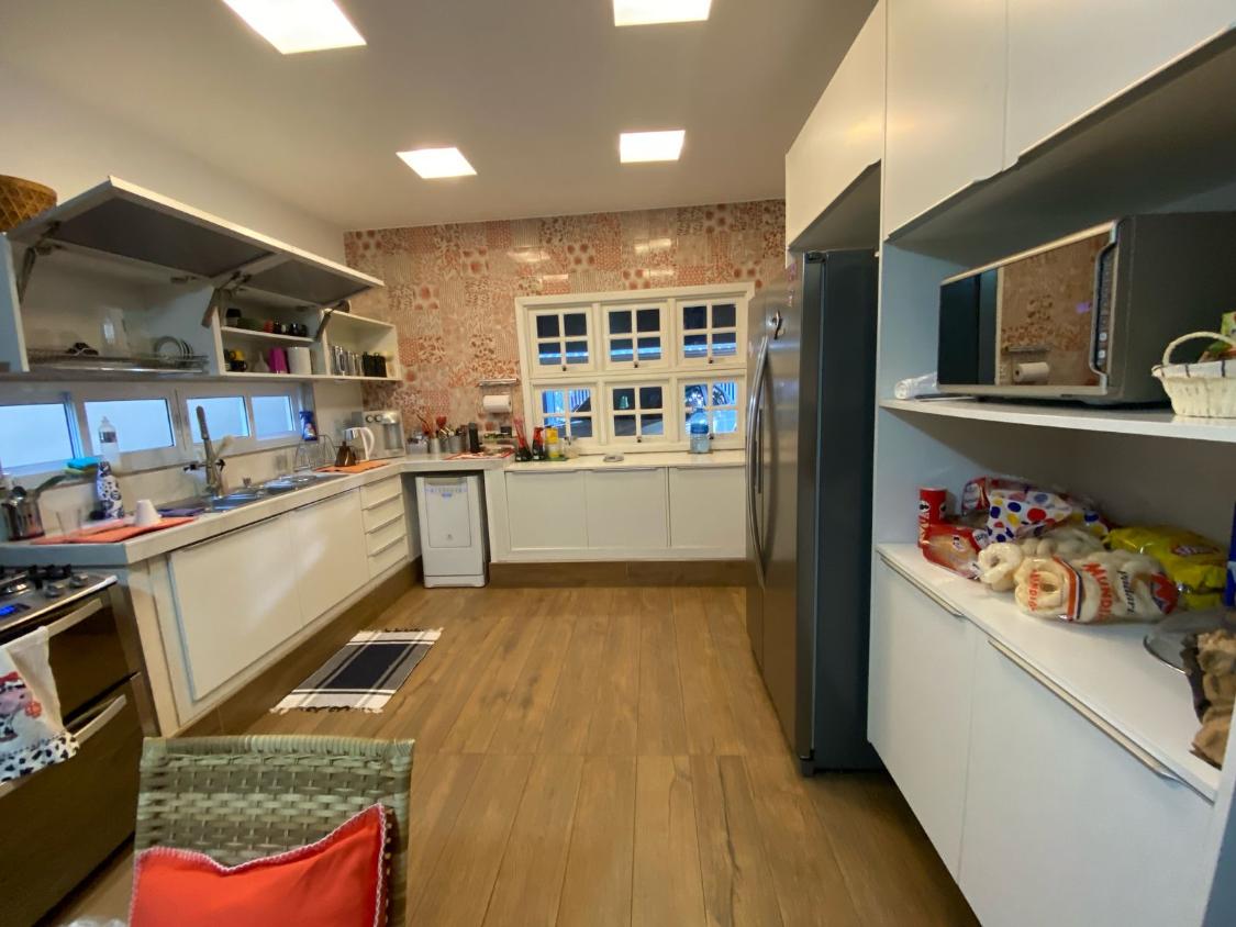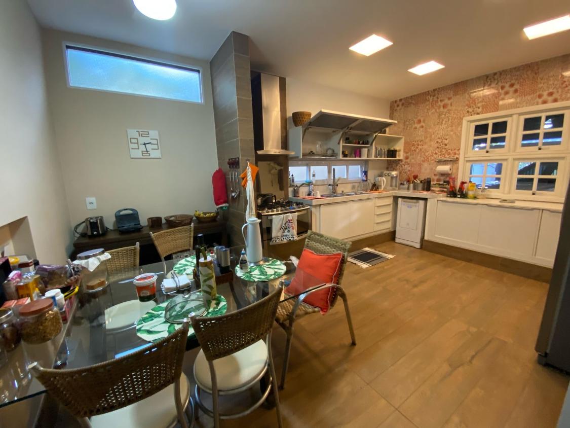 A casa È ampla, arejada e clara. Com estilo contemporâneo e super atual. Mistura pedras, vidros e madeira na sua decoração. No primeiro andar possui uma ampla sala, com uma varanda fechada em anexo, lavabo, cozinha ampla e planejada seguida de área de serviço completa: com dependência de funcionários e despensa.
