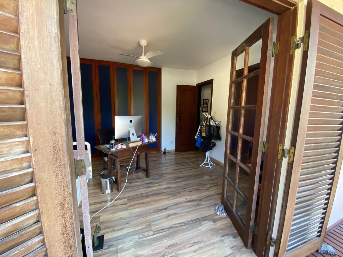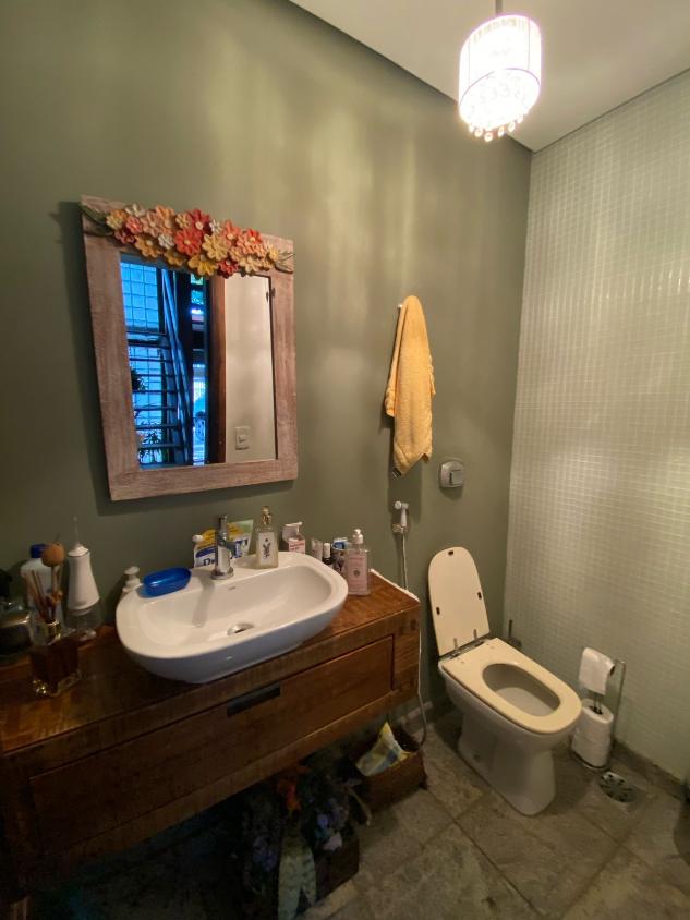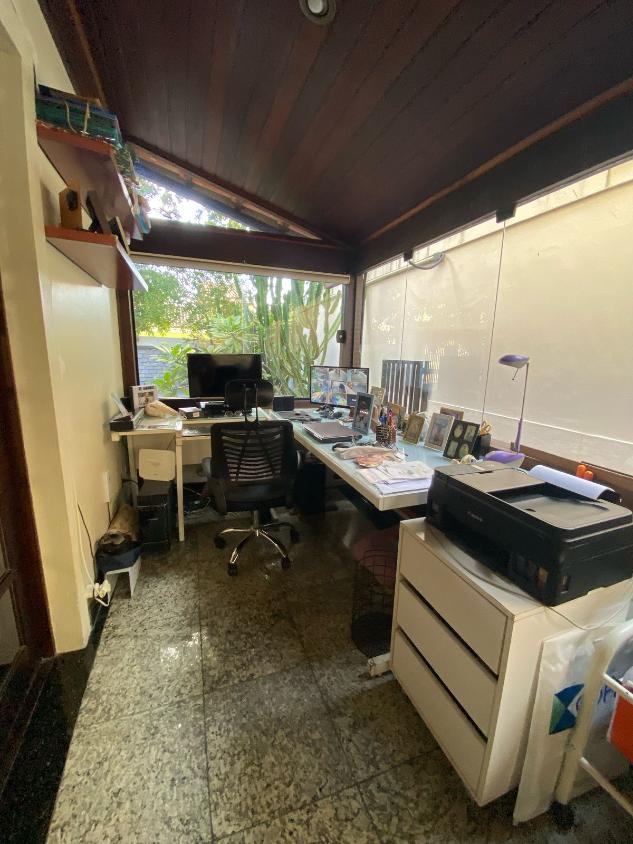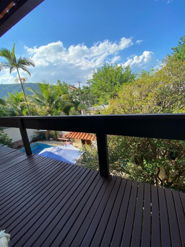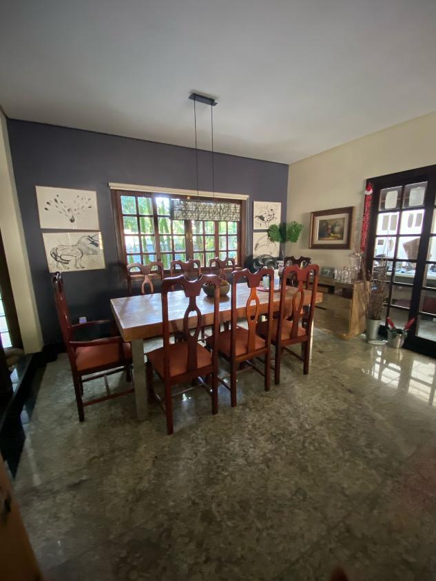 A casa È ampla, arejada e clara. Com estilo contemporâneo e super atual. Mistura pedras, vidros e madeira na sua decoração. No primeiro andar possui uma ampla sala, com uma varanda fechada em anexo, lavabo, cozinha ampla e planejada seguida de área de serviço completa: com dependência de funcionários e despensa.