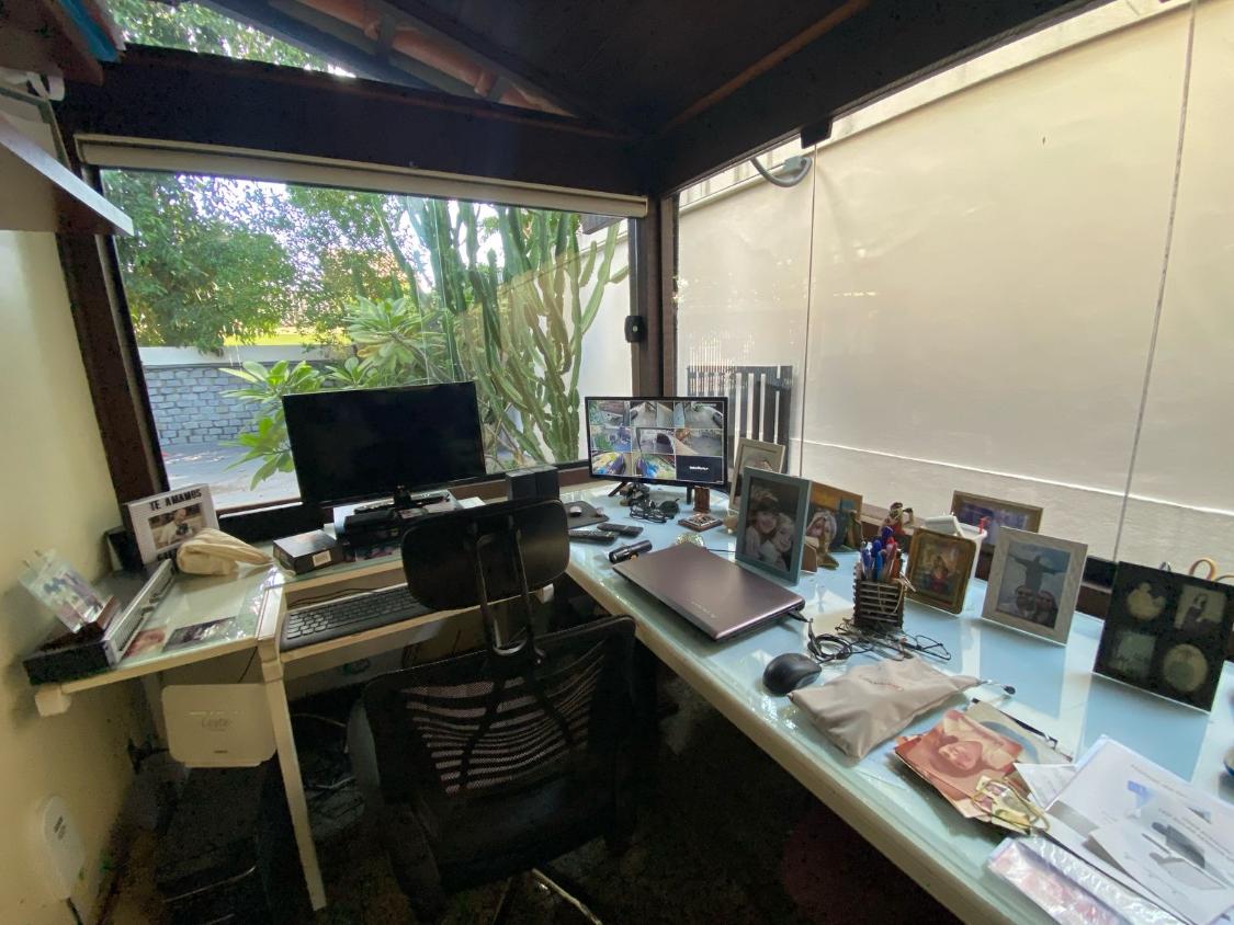 A casa conta com sistema de placa solar, cisterna de 18.000 litros e câmeras de segurança.