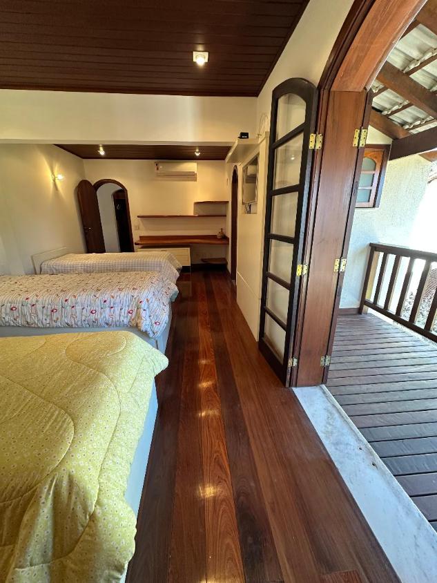 A casa principal conta com 4 dormitórios, sendo 3 suítes climatizadas com splits, além de armários planejados, salas amplas e integradas, e uma varanda convidativa. A arquitetura valoriza o estilo clássico com toques contemporâneos de conforto.