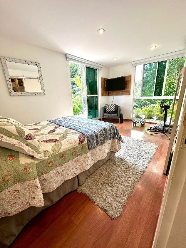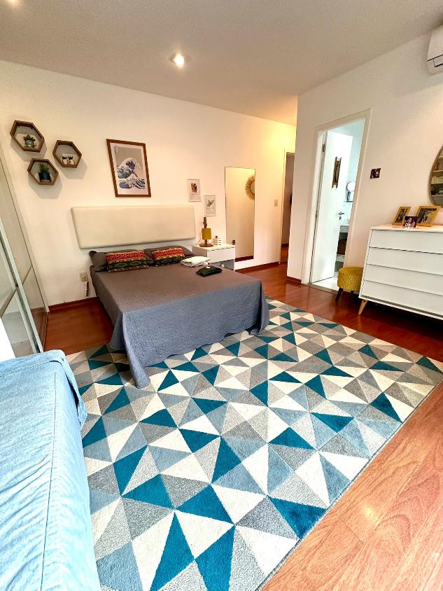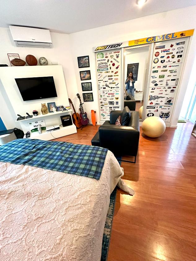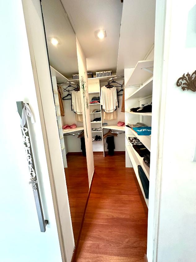 Distribuída em amplos ambientes, a casa conta com 6 quartos, sendo 5 suítes, todas com closet e armários planejados de alto padrão. Os ambientes íntimos são climatizados com splits, garantindo conforto térmico durante todo o ano.