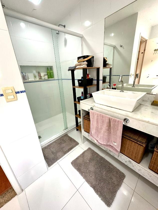A cozinha, funcional e elegante, é equipada com marcenaria sob medida e conectada à área de serviço completa, com dependência. São 8 banheiros bem distribuídos, combinando praticidade e requinte.
