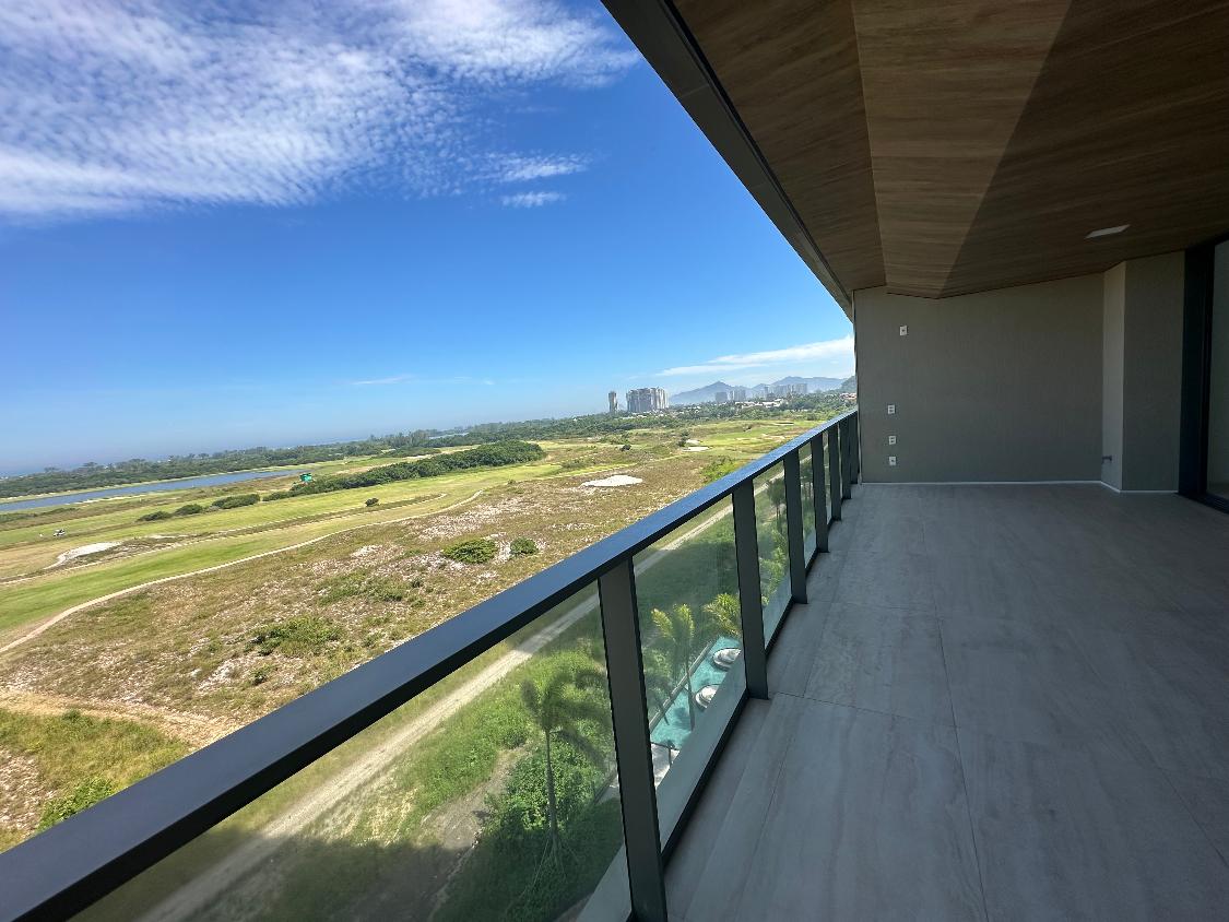 Apartamento de alto padrão à venda no condomínio Oceana Golf, na Barra da Tijuca, com vista privilegiada para o mar e para o campo de golfe.