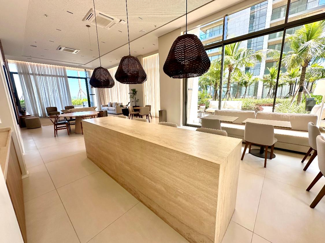 O apartamento possui posição frontal, com incidência de sol da manhã, além de vista aberta para o campo de golfe e para o mar ? um dos grandes diferenciais do imóvel.